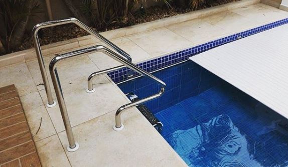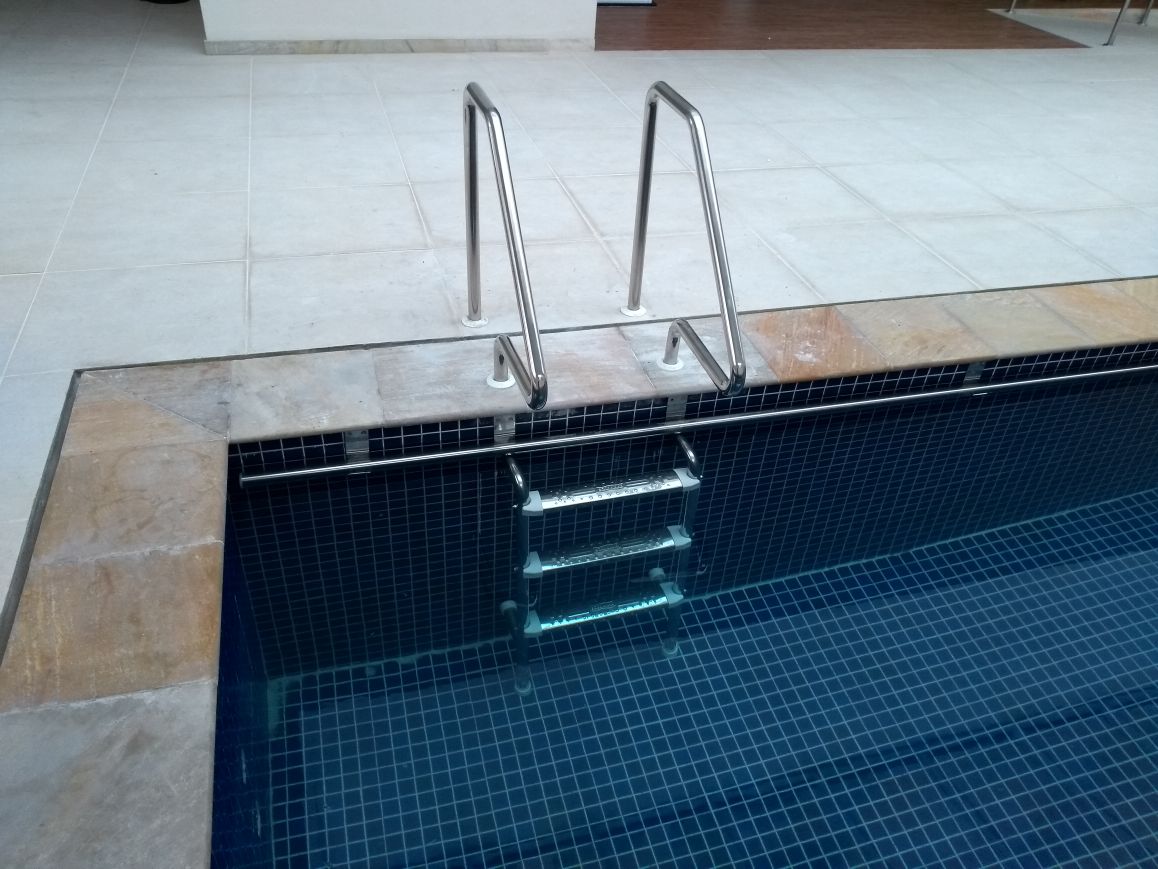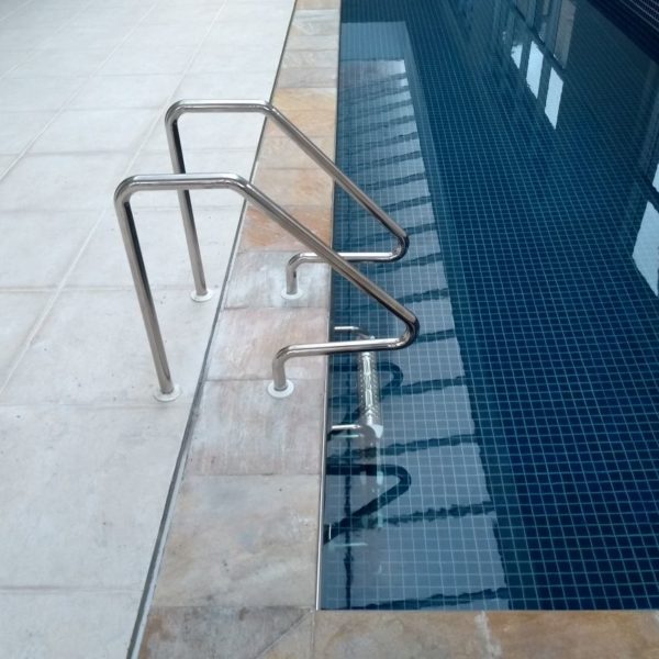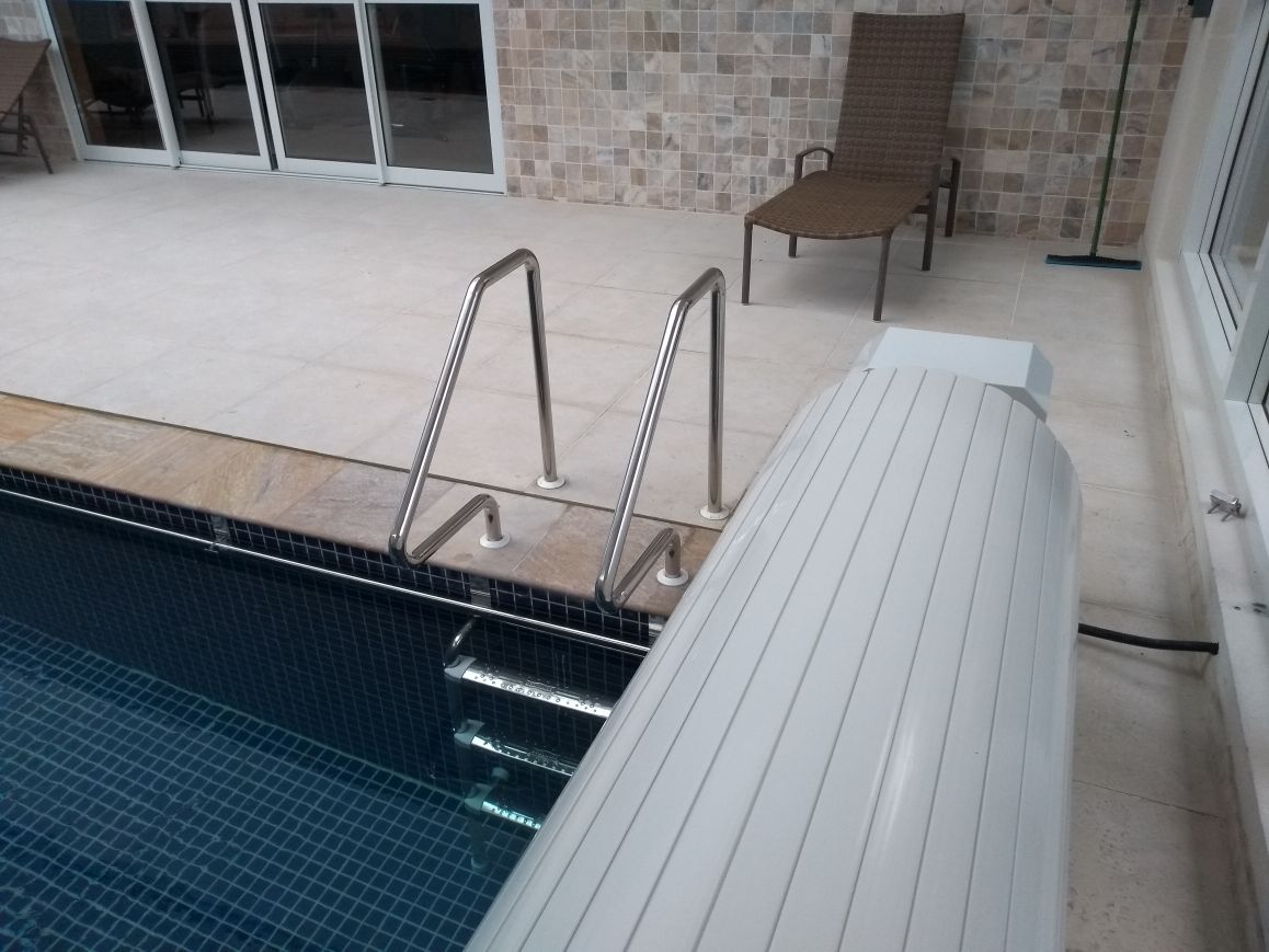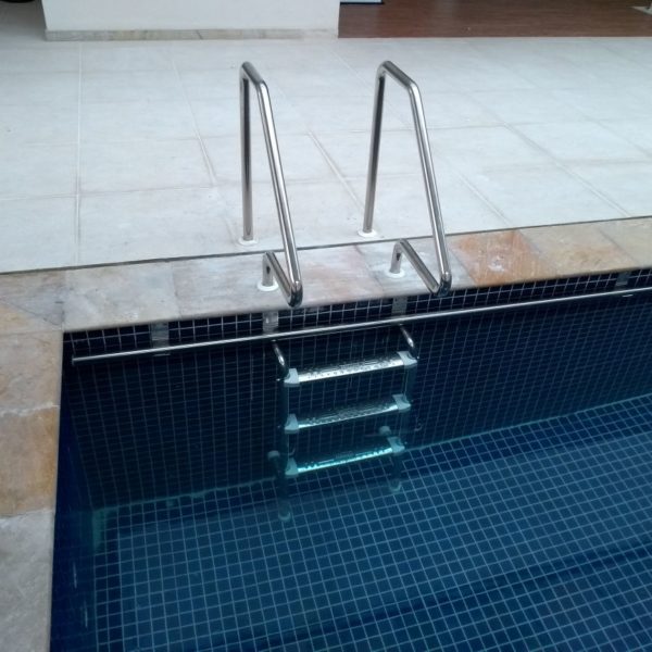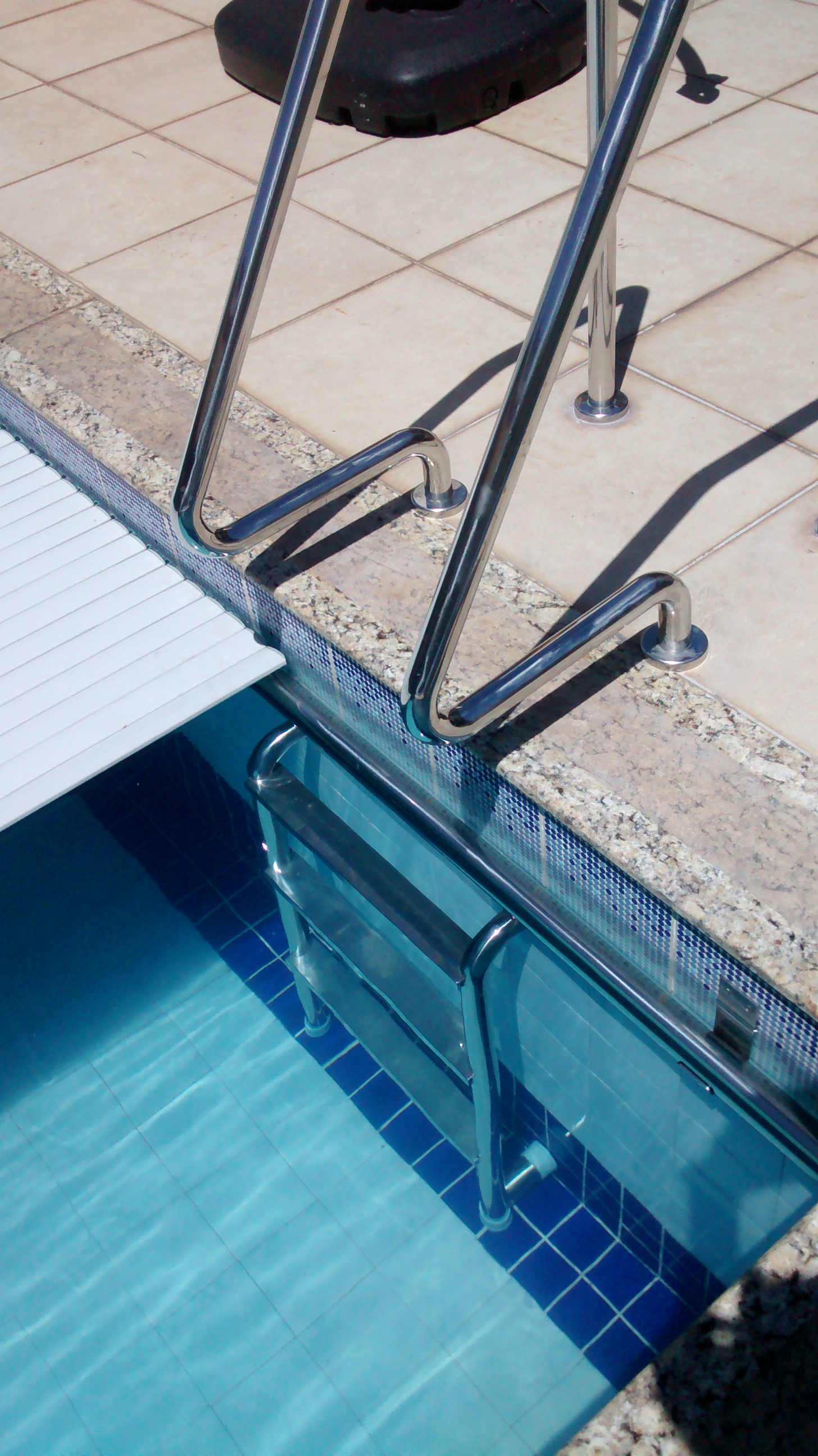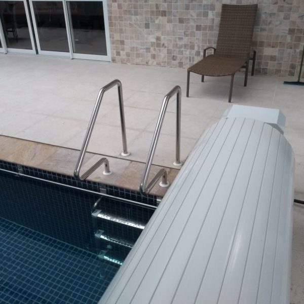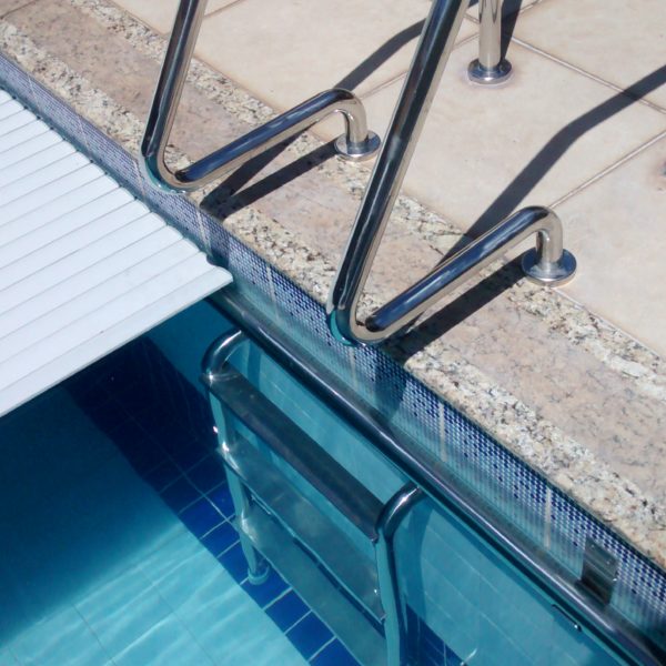 A Escada Bipartida fabricada pela COBERPOOL foi desenvolvida para atender piscinas com a CAPA AUTOMÁTICA sem necessidade de extinguir o uso da escada convencional. A Escada Bipartida é fixa e não tem a necessidade de ser tirada ou colada para cobrir ou descobrir a piscina.